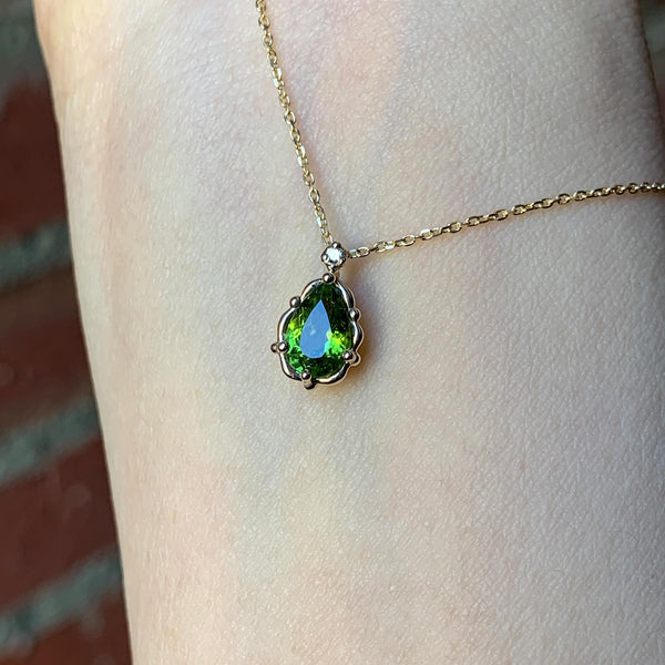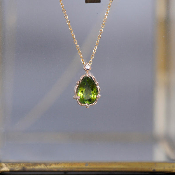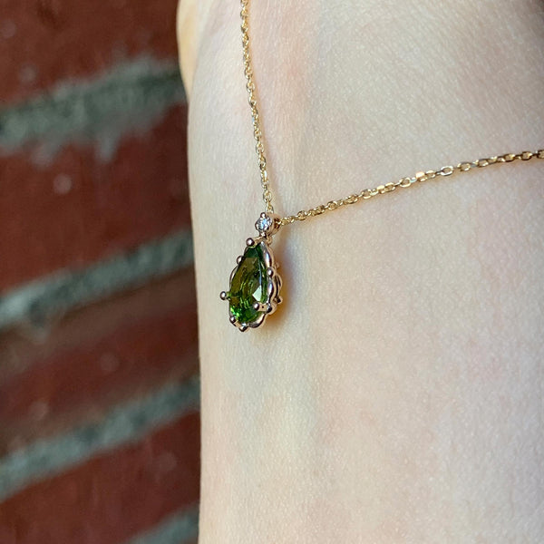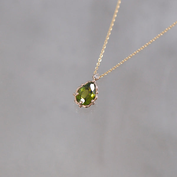 小粒のトルマリンのペアシェイプにこれもまた小粒のダイヤモンドを添えました。