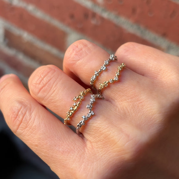 キラキラと海の中をあぶくが漂うように、メレダイヤがランダムに並びます。