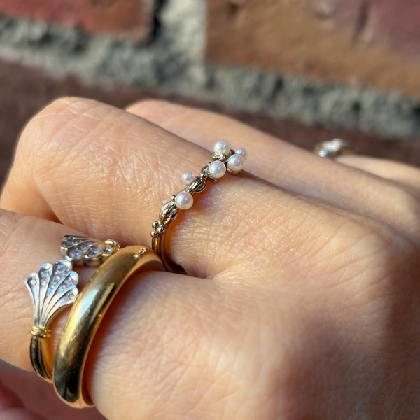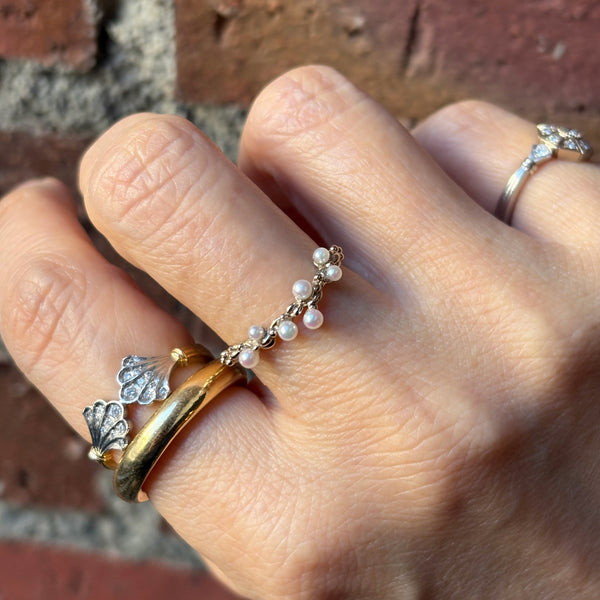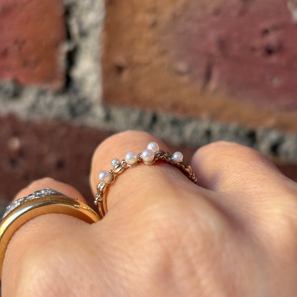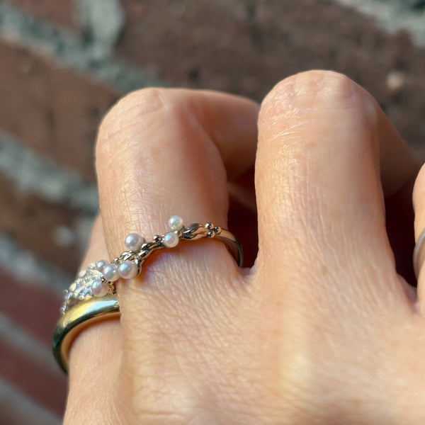 泡のようなリズミカルなアコヤのベビーを使用したリング。